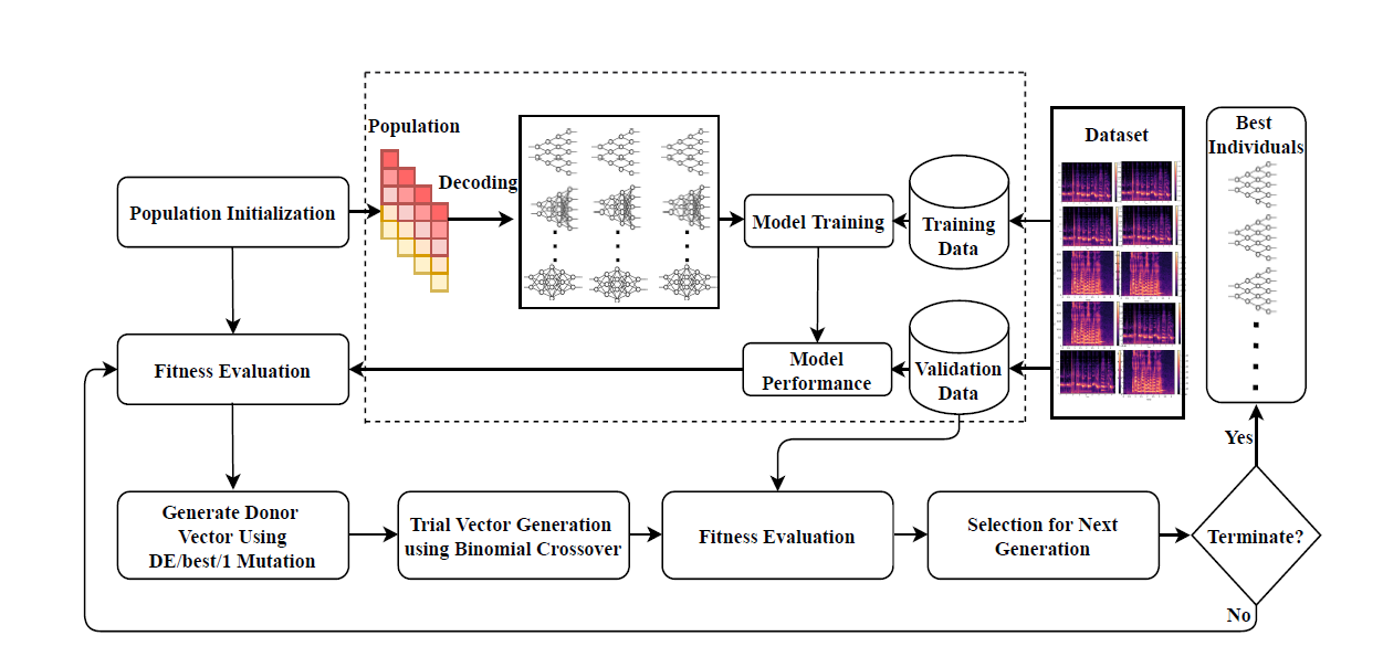 An evolutionary search approach for CNN hyper-parameters in speech command recognition.